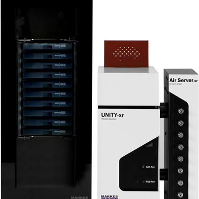 L'Air Server-xr est un système de faible encombrement qui permet d'introduire un flux contrôlé d'échantillon directement dans un piège de focalisation intégré, ce qui permet une analyse automatisée des COV et des COSV provenant des flux d'air/gaz en ligne.