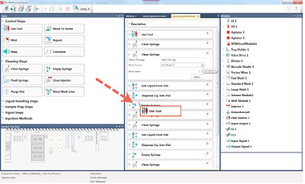 Pour les appareils PAL3 intégrés à un système GC-MS ou LC-MS, le logiciel PAL Method Composer vous permet de créer facilement des méthodes. L’interface graphique permet à l’utilisateur de choisir les étapes du protocole simplement par glisser déposer. Ceci signifie que l’utilisateur n’a pas besoin d’être spécialiste en programmation ou en robotique pour établir de nouveaux procédés sur l’appareil. La vérification et validation de la nouvelle méthode est réalisée automatiquement au fur et à mesure de sa création, évitant ainsi les problèmes lors de son exécution.