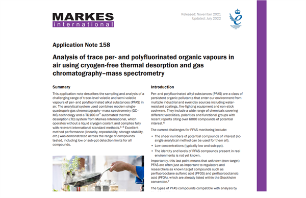 - La technologie TD sans cryogène entièrement automatisée, telle qu'elle serait utilisée pour de nombreuses applications de routine dans l'air, peut être appliquée à la surveillance des PFAS aux concentrations faibles et inférieures à la ppm requises, sans aucune adaptation ni optimisation