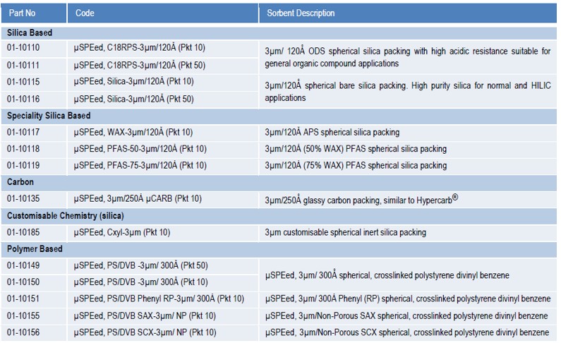Les cartouches micro SPE peuvent concentrer de grands volumes d’échantillons et éluer avec des volumes minimaux, ce qui entraîne des facteurs de concentration substantiels pour l’analyse à l’état de traces. De plus, les adsorbants à particules de 3 μm des μSPEed permettent une technique de préparation « tout-en-un » en nettoyant et concentrant l’échantillon pour le rendre prêt pour la chromatographie, sans nécessiter de filtration, centrifugation ou évaporation supplémentaires.