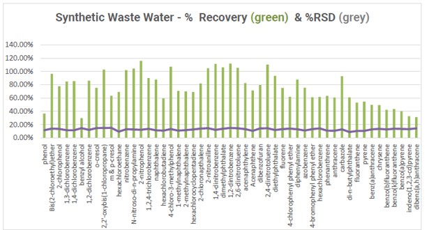 Les résultats analytiques ont démontré d’excellents taux de récupération et des écarts-types relatifs (RSD) pour la gamme des composés organiques semi-volatils (SVOC) de la méthode 8270.