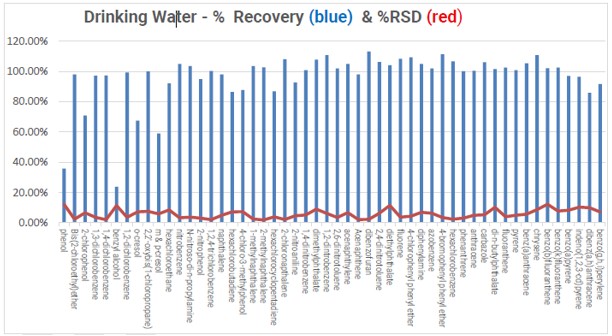 Les résultats analytiques ont de nouveau démontré des taux de récupération satisfaisants et des écarts-types relatifs (RSD) sur la gamme des SVOC de la méthode 8270.