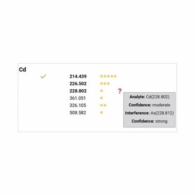 - Software intelligente IntelliQuant, fornisce conoscenze di livello esperto per identificare le interferenze spettrali che possono influire sulla precisione, fornendo raccomandazioni che consentono di selezionare rapidamente la lunghezza d'onda migliore ed evitando inutili rimisurazioni