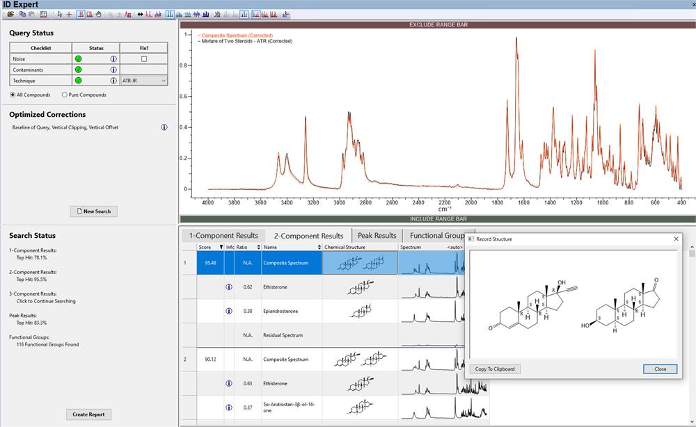 Strumenti aggiuntivi specifici per ogni tecnica, come: analisi dei gruppi funzionali IR/Raman, ricerca inversa e adattiva MS (brevettata), deconvoluzione/analisi MS automatizzata, predizione NMR e molto altro!