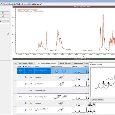 Strumenti aggiuntivi specifici per ogni tecnica, come: analisi dei gruppi funzionali IR/Raman, ricerca inversa e adattiva MS (brevettata), deconvoluzione/analisi MS automatizzata, predizione NMR e molto altro!
