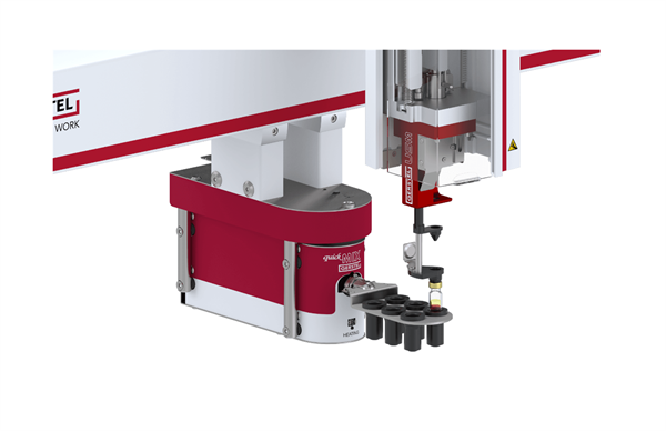 L'opzione QuickMix di GERSTEL consente di integrare un agitatore verticale rapido come parte del processo di preparazione automatica del campione utilizzando il campionatore multifunzioe MultiPurposeSampler MPS.