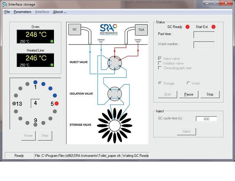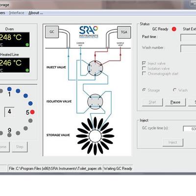 Il software IST sviluppato da SRA consente di modificare la sequenza di stoccaggio, salvare i metodi, visualizzare lo stato dello strumento e gestire automaticamente l’avvio delle analisi GC.