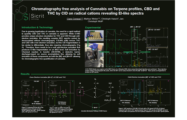 La ionizzazione "soft" mediante reazione chimica in trasferimento (SICRIT®) raggiunge questo obiettivo, consentendo la ionizzazione "soft" di questi componenti sia come [M]+ che come [M+H]+, consentendo una quantificazione della cannabis senza cromatografia.